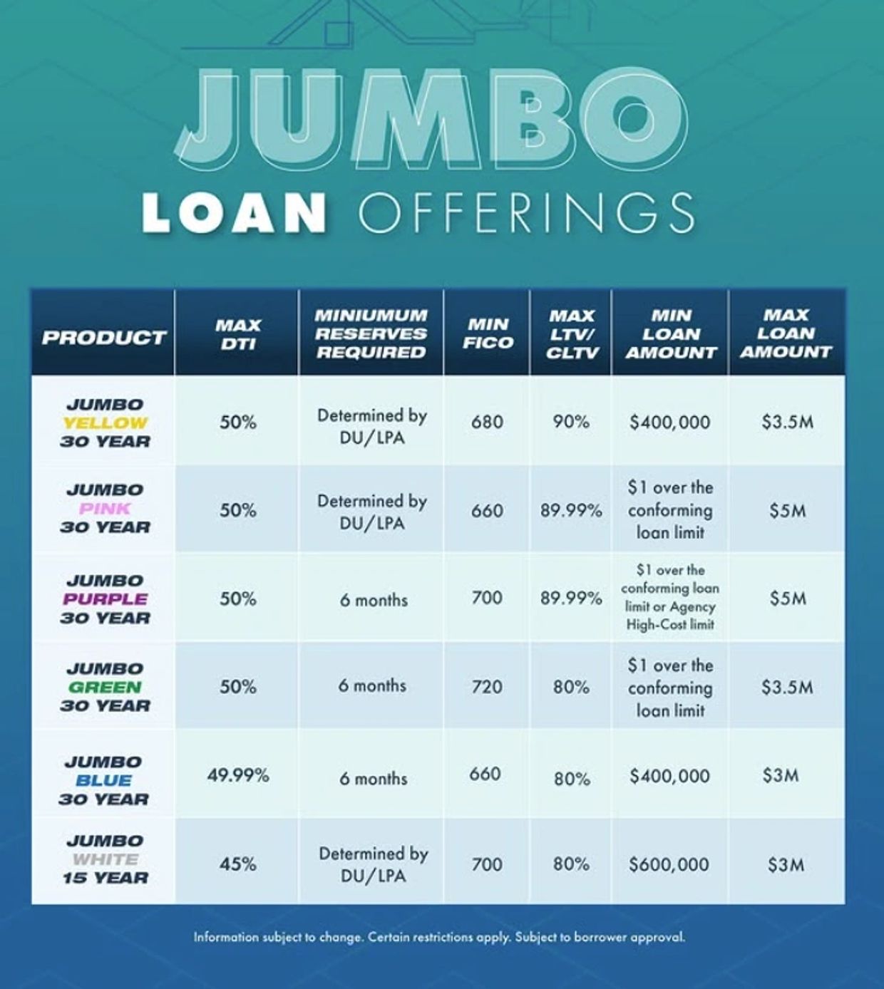 Jumbo loans differ from conforming loans in several ways. First, they offer a larger amount of financing than a conforming loan. With this larger loan amount typically comes a variety of rate options.